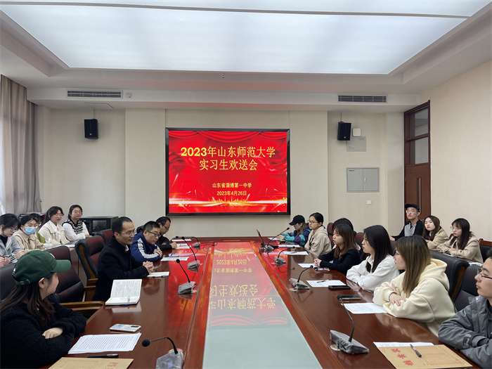 4月26日下午,我校在博雅楼会议室为山东师范大学实习生们举行欢送会。2022级年级领导小组、教师代表和来我校实习的45名山东师范大学同学参加欢送会。