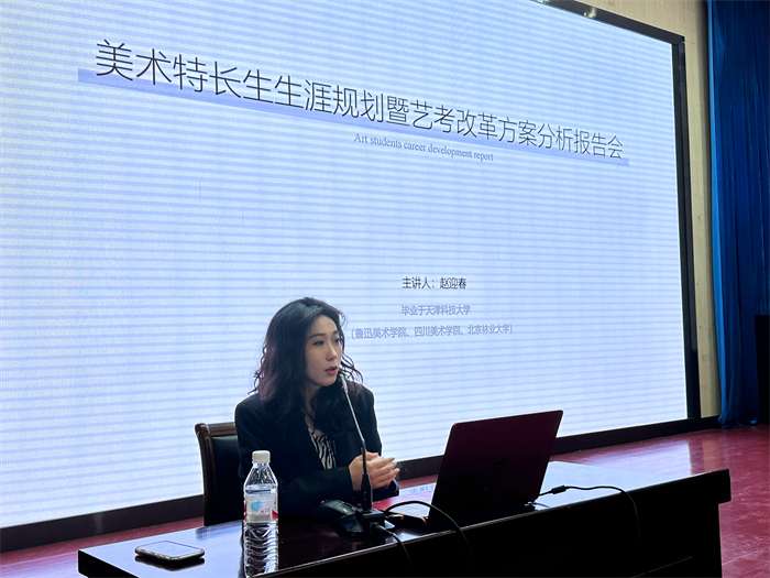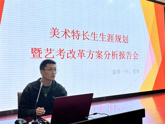 举办美术特长生生涯规划暨艺考改革方案分析报告会。会上,学校2012级优秀校友赵迎春为高一高二年级美术特长生以及家长详细介绍了国内外高校的专业设置、当前时兴的职业发展等内容,为同学们规划未来发展,提升未来职业能力提供了参考意见。学校艺术中心董彬老师结合《教育部关于进一步加强和改进普通高等学校艺术类专业考试招生工作的指导意见》,具体分析了山东省美术统考改革前后的变化以及应对措施,强调了提前制定规划、文化课与专业齐头并进、及时了解艺考动态信息的重要性。