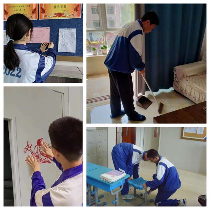几案洁,笔砚正,争做收纳整理师。学校里,同学们在老师的指导下对教室内外公共设备、教学器材、劳动工具进行了维修维护;参与班级、校园文化建设,利用木艺、布艺、彩绘等设计,美化教室环境,让教室变得更加温馨、舒适。在家里,同学们设计了个人房间的收纳方案,做好个人物品整理,提高了生活品质。
