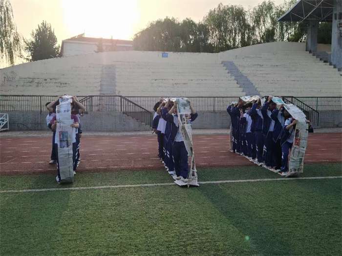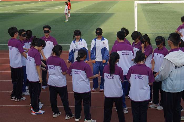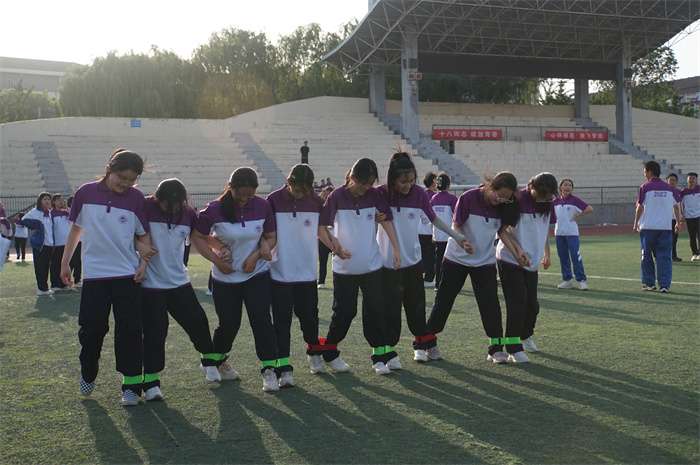 趣味运动会,等你来挑战。极限长城、袋鼠跳、无敌风火轮、10人9足、盲人方阵……东倒西歪、前俯后仰,欢声笑语中,同学们放松了心灵,愉悦了身心,班级在协作中凝聚了力量。