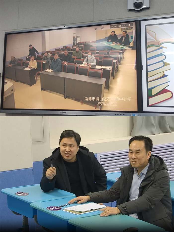 1月9日,我校通过淄博市交互在线教学系统同石马中心校初四级部开展数学联研联教活动。学校党委副书记、校长王波,党委委员、副校长李荣国,石马中心校党委书记赵坦军和校长王晖,以及两校的数学教师参加活动。