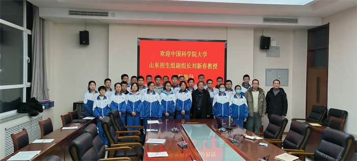 1月13日下午,中国科学院大学山东招生组副组长刘新春教授一行莅临我校,作《秉持科技报国理想 走进神圣科学殿堂》专题报告,高一高二年级部分学生代表参加活动。
