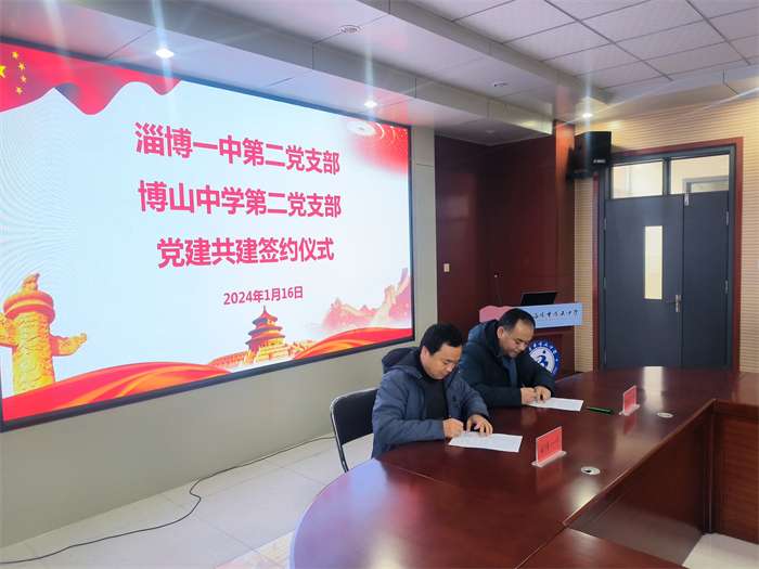 为加强党建引领,凝聚发展合力,助推党建工作与业务工作深度融合,1月16日下午,我校第二党支部与博山中学第二党支部举行党建共建签约仪式。仪式在博山中学举行,我校党委委员、副校长李涛,博山中学党委书记、校长赵国良,两支部支委成员及部分教师代表参加。
