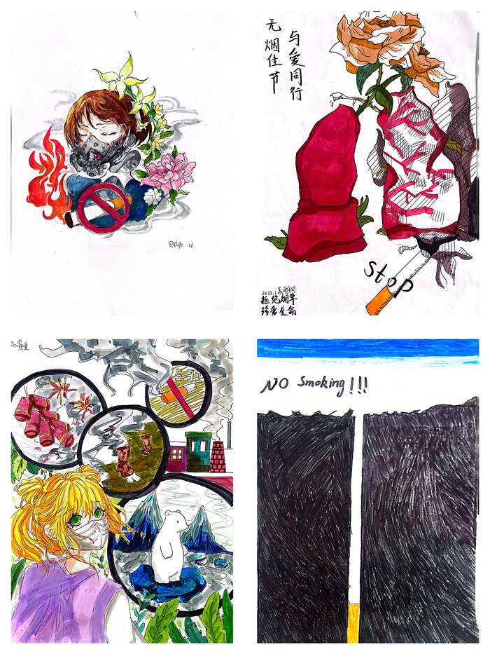 寒假前,各班召开主题班会,引导同学们正确认识烟草危害,争做家庭控烟监督员。假期期间,同学们通过绘画的等形式生动展现烟草、电子烟带来的危害,积极倡导无烟生活,展现了新时代青少年的良好风貌。