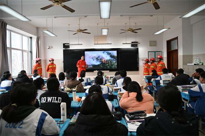 为提高师生消防安全意识,提升学生们的防火自救能力,加强森林火灾预防工作,2月28日,我校特邀原山集团消防队员走进校园,开展森林防火消防培训活动。活动在学校田径场举行,2022级学生代表参加培训。