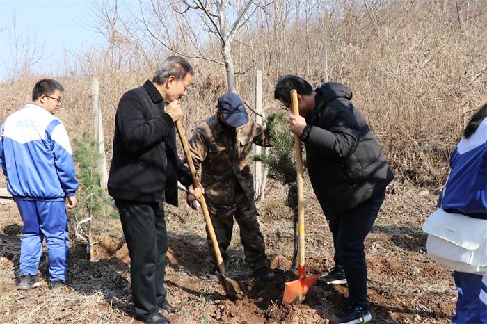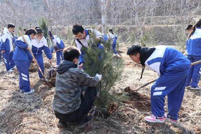 仪式结束后,作为劳动教育实践基地的第一课,同学们参与了原山林场的植树活动。林场的工作人员向同学们详细讲解了植树的要领,同学们分工合作,在林场工作人员的指导下顺利完成了本次植树活动。