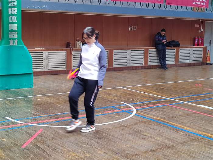在工会干部组个人踢毽子比赛中,我校工会干事刘心格老师出战,1分钟内时间不长,但刘老师神情专注,踢得动作优雅、轻松熟练,色彩斑斓的毽子在她的脚上上下翻飞,来回飞舞,宛如一朵朵绽放在春天里的绚丽花朵,给人一种“毽人合一”的感觉,最后斩获工会干部组个人踢毽子第一名。团体绕8字跳长绳项目将比赛推向了高潮,长绳在空中划出一道道优美的弧线,我校张志程、刘晨霞、马伟光、秦本忠、孙真谛、黄令洋、杨宁、翟志斌等8名运动员们一个紧跟一个,灵活地跃进摇曳的大绳中,在娴熟的配合中,3分钟跳出了331个的好成绩,名列跳长绳项目第一名!