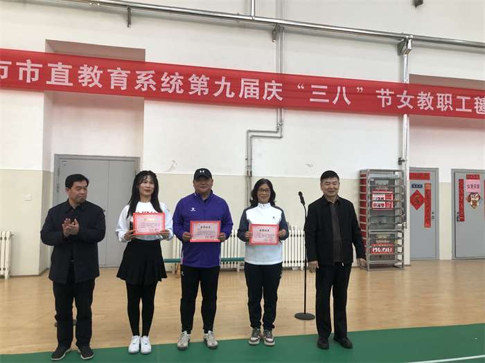 为庆祝第114个“三八”国际劳动妇女节,展现学校女教职工奋发向上、团结协作的良好精神风貌和新时代女性崇尚运动、追求健康的魅力风采,3月9日,我校组织11名队员参加了市直教育系统第九届庆“三八”女教职工毽球比赛。此次活动共有来自局机关、局直属单位、局属学校的28支代表队的430余名运动员、教练员和裁判员参加,我校参加了女子单人踢毽子、工会干部踢毽子、团体绕8字跳长绳项目的比赛。