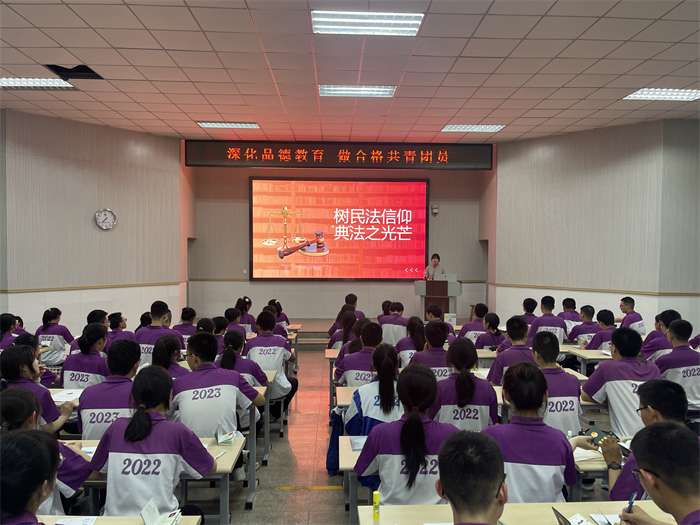 举行“点亮青春 法润校园”主题班会。班主任通过生动的案例、直观的图片带领同学们了解《民法典》的法律法规,将法治教育与心理健康教育、安全自护教育、防欺凌教育等相融合,让同学们在轻松愉快的氛围中学习法律知识,树立守法观念。