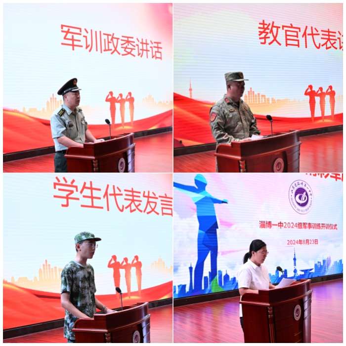 开训仪式在庄严的国歌声中拉开序幕。博山区人武部部长徐兴文对受训学生提出了希望和要求,让同学们珍惜宝贵的军训机会,在日常训练中磨炼意志品质,在服从命令中明白组织纪律,在“摸爬滚打”中学会艰苦奋斗,在关心互助中感受团结友谊。教官代表李超上台表态,表示将以良好的军人形象、过硬的军事本领引导大家,提升学生的军事理论水平和技能;学生代表邵思源表示,会全力以赴完成军训任务,在军训舞台上绽放青春风采;席云丽宣读《淄博一中关于评选2024年军训工作先进班集体、军训标兵的意见》。最后,王波为军训团授旗,军训活动正式拉开序幕。