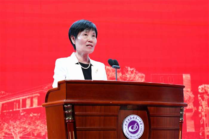 毕红卫代表市政府向淄博一中全体师生及广大校友致以诚挚祝贺。她深情回顾了淄博一中百年来的辉煌历程,对学校在人才培养、教育科研等领域所取得的卓越成就给予了高度评价;希望淄博一中站在新百年起点上,发扬优良传统,不断开拓创新,铸就新的辉煌;希望一中广大教师坚持不懈用习近平新时代中国特色社会主义思想铸魂育人,大力弘扬践行新时代教育家精神,以更加饱满的热情投身教育事业,为教育强市建设做出新的更大贡献;表示市政府将一如既往地支持教育事业和淄博一中的发展,希望社会各界继续关心、支持教育事业,希望广大校友们秉承好一中精神,以拳拳之心多为母校献计献策,多为家乡建设贡献力量,助力淄博早日实现“强富美优”城市愿景。