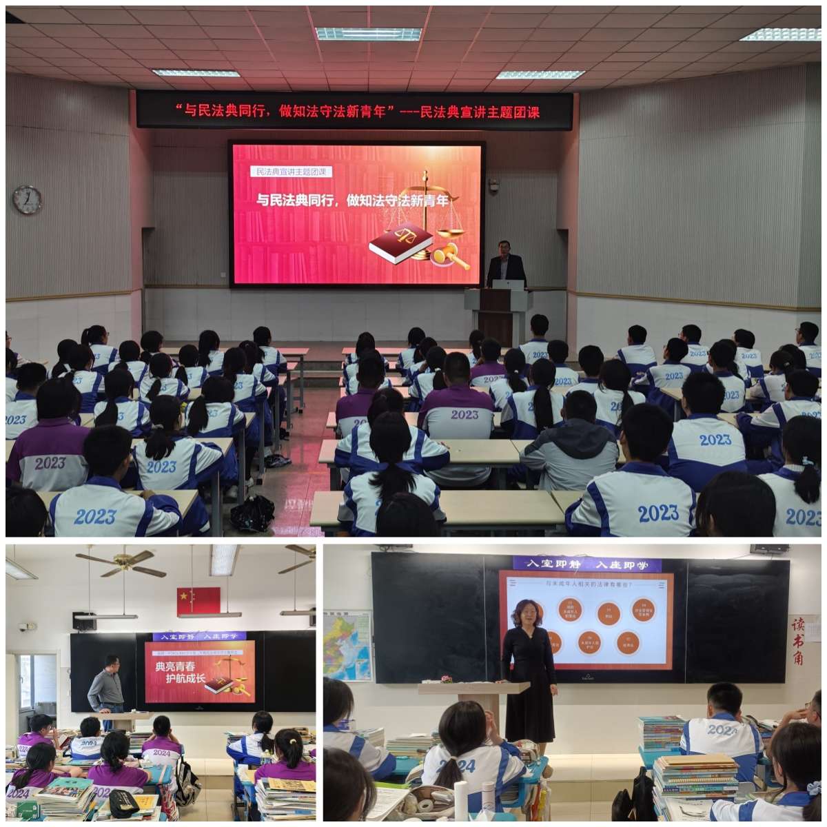 开展“与民法典同行,做知法守法新青年”主题团课。学校团委负责同志从民法典是什么、民法典如何保护我们、生活中的民法典三个方面,以青少年成长中的高频场景为案例,让民法典从书本走向现实。