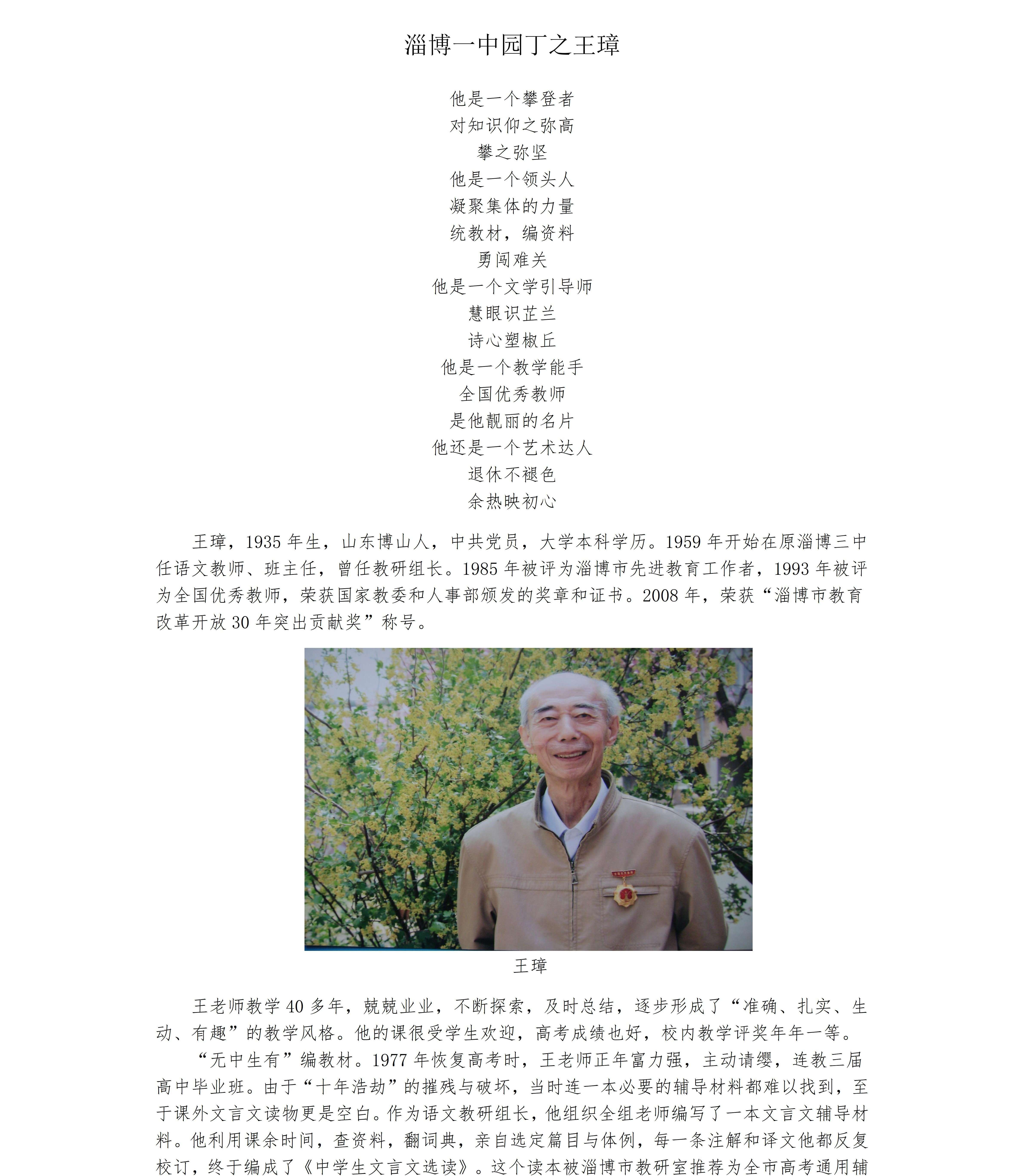 淄博一中园丁之王璋