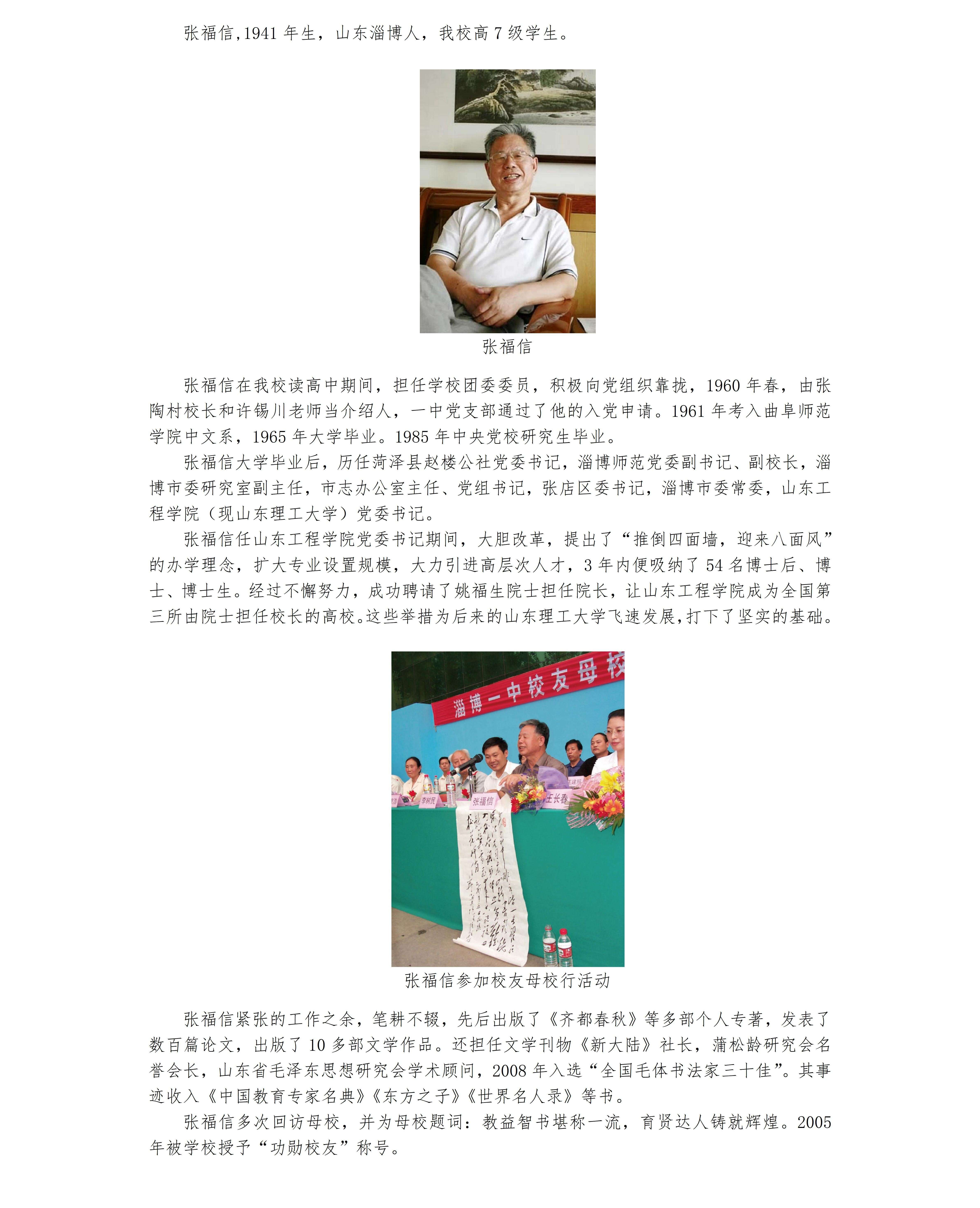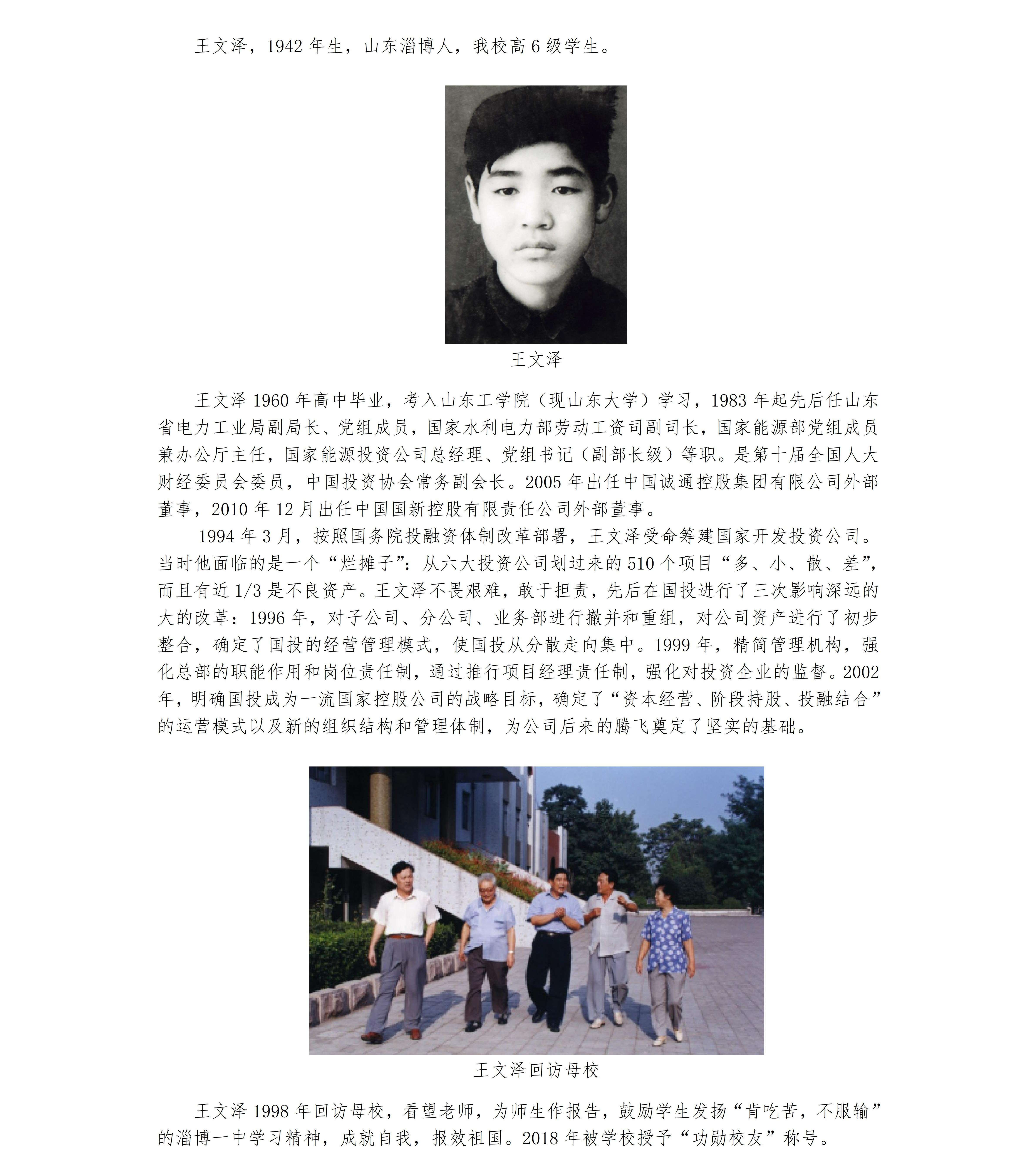 淄博一中优秀校友之王文泽、张福信