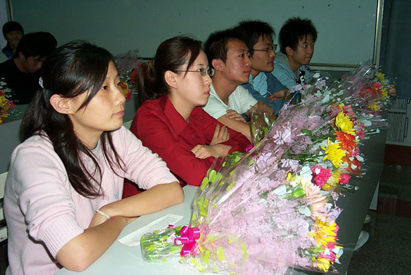 会上,第二届中日联程高中班的同学还向即将赴日本留学的同学献了鲜花。会后,与会领导和首届中日联程高中班赴日本留学的学生及家长合影留念。