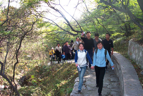 来吧!为友谊和快乐放歌 日期:2005-10-25 来源:本站 X 悠悠碧空,艳阳高照,绚烂红叶,欢声笑语。10月23日,我校以欣赏自然,陶冶情操,加强交流,增进友谊为主旨的青年教师赏红叶登山活动,在白石洞风景区举行。 让我们共同分享自然之美、友谊之美、生活之美吧。