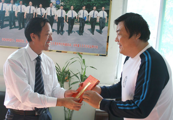 最后,王方刚老师代表名师发表感言,感谢企业对教师身体健康的热心关注,表示不忘社会各界的嘱托,以强健的体魄,高涨的热情,扎实的工作,为学生能够接受到高素质的教育,为学校永远站立于全市教育教学质量的最前沿做出积极的贡献。