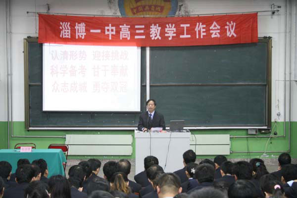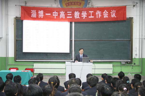 陈贞凯校长的动员讲话包括三部分:一是认清形势,迎接挑战;二是科学备考,甘于奉献;三是众志成城,勇夺双冠。他指出,刚刚结束的06年高考,我校本科录取再超千人,应届生文理本科一、二批上线率居全市第一,学校获得了淄博市2006年普通高考十强学校第一名、淄博市“十五”期间普通高中名校、2005—2006学年度淄博市普通高中教学工作先进学校三项殊荣,为此,淄博市教育局专门发来贺信,淄博日报、现代教育导报、鲁中晨报、音体美报、博山周刊、博山电视台等多家新闻媒体相继进行了宣传报道。成绩的取得,离不开各级领导的关注与指导,离不开社会各界的理解与支持,更离不开老师们的辛勤和汗水。他强调,高三是一个特殊的时期,高三工作是社会关注的焦点,关系到千千万万家庭的期望,同时也关系到学校的生存和发展。全体高三老师必须以高度的使命感、责任心对待高三工作,对学校负责,对社会负责,对每一个学生的一生负责。在复习备考上,一是课堂教学要科学,重点提高课堂效益,有针对性的落实好尖子生、弱科生、边缘生的个体化推进;二是学生的教育要科学,重点培养学生良好的心理素质和行为习惯;三是集体备课要科学,重点体现新课改的理念要求,注重“三维目标” 即知识与技能,过程与方法,情感、态度与价值观的培养;四是年级管理要科学,明确岗位责任,抓好分工落实,确保协调与管理质量。他希望,各职能部门和非毕业年级要突出高三在全校“重中之重”的地位,发扬我校多年来形成的打团体战的优良传统,上下齐心,众志成城,再创辉煌。