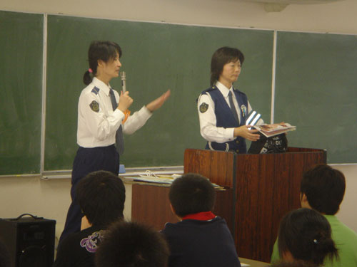 日本女交警深入课堂宣讲交通安全知识