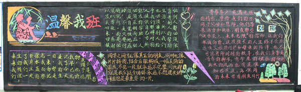 根据学校第十八届艺术节活动安排,学校团委会、艺术中心在高2006级、高2005级各班组织开展了以“温馨我班”为主题的黑板报比赛。各班精心编排,用美丽的图片和华丽的词藻,描绘出一幅幅班级建设的蓝图。这次活动,融思想性和知识性为一体,既培养了同学们搜集材料、动手操作的实践能力,又为班级建设和融合创造了良好的氛围。