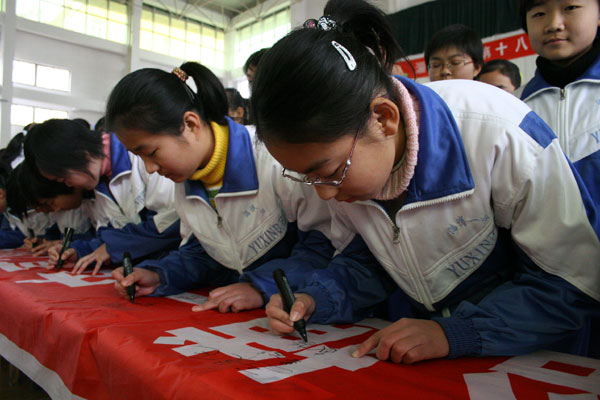 高2006级开展“将响亮的名字写在诚信的答卷上”签名活动